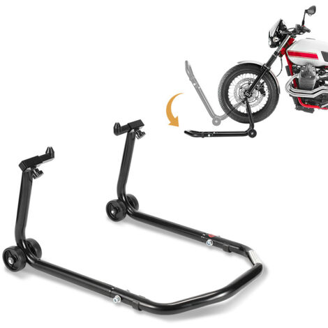 Pour l'entretien de votre moto, cette béquille HOMCOM est idéale ! Support universel pour pneus 18\, 17\ et 10\. Charge max 200 kg. Cadre acier robuste avec revêtement anti-poudre. Adaptateurs crochet et coupelle inclus. Poignée large pour manipulation facile. Dimensions 70x47x34,5 cm. Les revêtements antidérapants assurent stabilité et sécurité. Parfait pour les réparations, nettoyage, entretien... Un outil indispensable pour tout motard qui bricole !